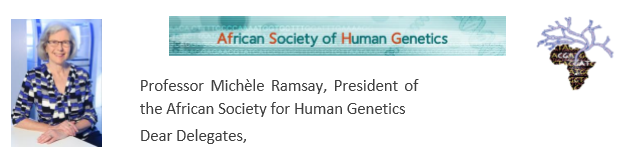Nous avons l’honneur et le plaisir, au nom des membres des comités d'organisation local et international, de vous accueillir au 9ème congrès de la Société Africaine de Génétique Humaine (AfSHG). Le thème de la de cette année est «Renforcer les capacités de l’Afrique en génétique humaine». Les raisons qui ont motivé le choix de ce thème sont liées au retard accusé par l’Afrique dans le développement de la génétique humaine. Ce renforcement de capacités (amélioration du plateau technique, développement de compétences, …) permettra une prise en charge plus efficiente des pathologies à composante génétique qui posent de réels problèmes de Santé Publique.